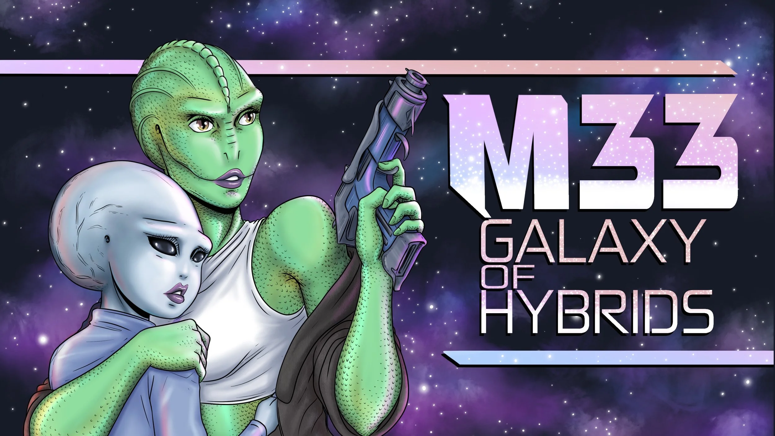 Below is a FREE, black & white version of the first issue of M33: Galaxy of Hybrids. To purchase physical copies of the books in full color, click the buttons below.